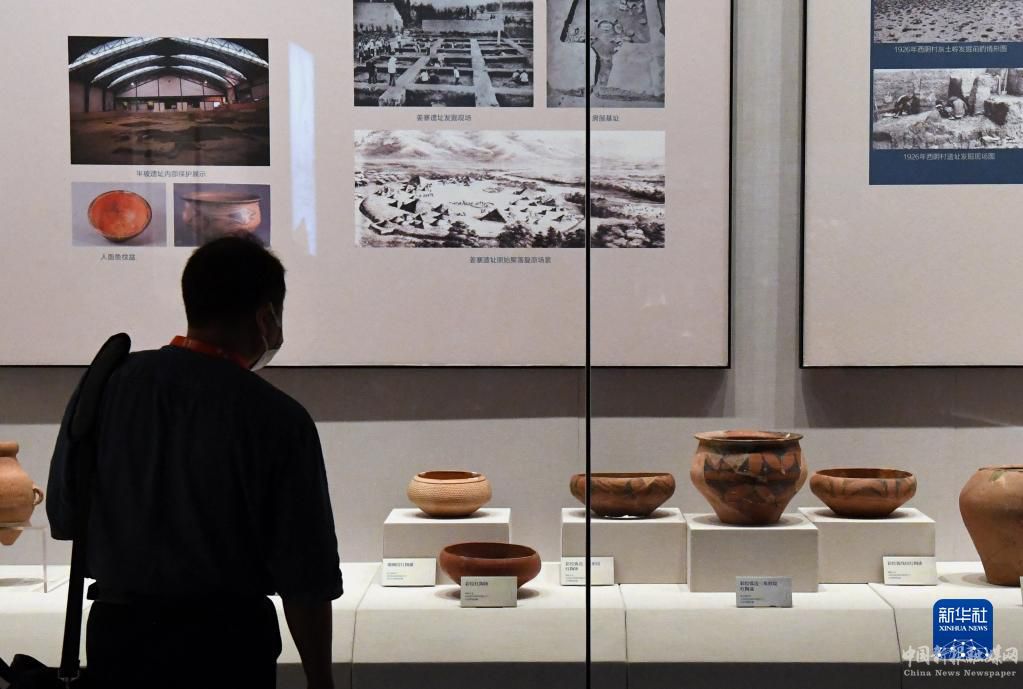 9月4日,参观者在“繁星盈天——中国百年百大考古发现展”上观看展品。
