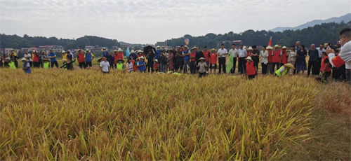 整个田野上收割机轰鸣,割禾比赛加油助威的呐喊声,挑粮比赛出现扁担断裂的小插曲,更有85岁的老党员左财寿积极参加插秧比赛,拔河比赛中有穿高跟鞋的女中豪杰,一阵阵欢呼,一声声呐喊,把趣味运动会一次次推上高潮。