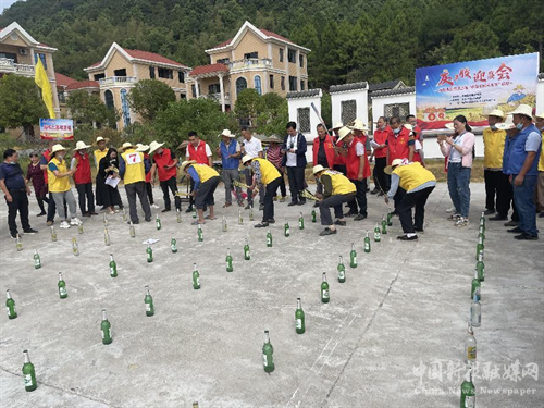 农民趣味运动会共有机器收割比赛项目,镰刀割禾比赛项目,插秧项目(利用啤酒瓶模拟插秧,参赛选手都是老年人),运粮比赛项目,拔河比赛项目等五个项目。