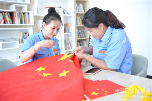 在庆祝新中国成立七十三周年喜庆之际,9月29日,中铁一局新运朔黄肃宁分公司职工自发组织了“手绣国旗、献礼国庆”活动。女工们用手中的丝线精心绣制了一幅长1.92米,宽1.28米的五星红旗,向祖国母亲献礼。红旗上每一针一线都表达着分公司职工对伟大祖国的赤子之情、对美好生活的由衷赞美,喜迎党的二十大胜利召开。(特约记者 常魁星 通讯员 王政东 万应强)