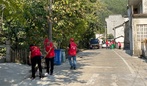 9月29日,在休宁县鹤城乡渔塘村到新安源村的沿途看到,30多名党员、志愿者和村民不怕脏不怕累,对公路两旁的杂草、河道里的垃圾、水口林下的枯叶进行清理,给广大群众营造了一个干净整洁、舒适祥和的节日环境。(舒琪 )