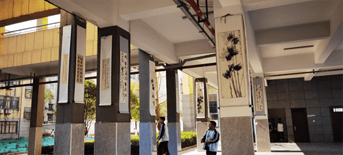 一幅幅格调高雅的书画作品,令师生们赞不绝口,回味良久。一波又一波的师生驻足于作品前,或沉思品味,或以手临摹,或呼朋引伴相互交流,或携自己的书作对照改进,校园处处弥漫着翰墨香气。