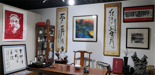 这次画展没有举行开幕式,没有举办宴会,也没有高规格展厅。因为疫情,画作本人也未到现场,但得到了当地文化艺术界、收藏界人士的广泛关注,参观者源源不断。曾任湘潭市政协副主席、民革湘潭主委、湘潭市收藏协会会长刘建湘先生观后感慨地说:“在这小小的画廊,能见到这样高规格高水平的作品实感意外。”