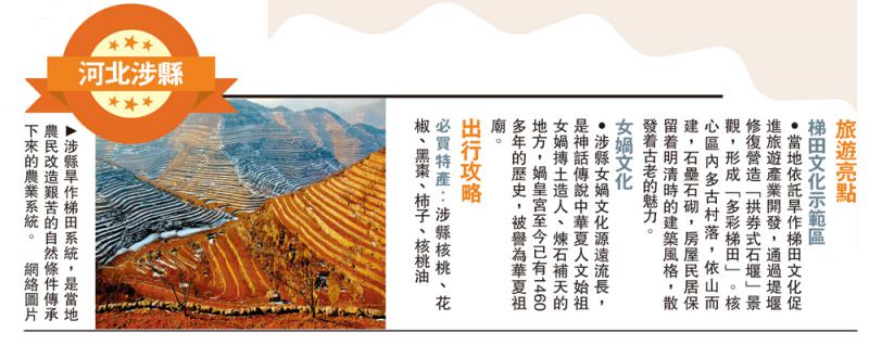 2014年,涉县旱作石堰梯田系统被原农业部认定为“中国重要农业文化遗产”,这一系统曾被到访的联合国世界粮食计划署专家称作“了不起的人间奇迹”。古老的耕作方式倔强地延续至今,由农耕文化衍生出的农旅产业也正为历经沧桑的太行梯田注入新活力。