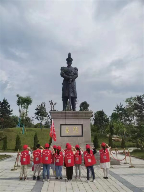 从台阶而上,映入眼帘的是“护国军神”这四个大字,这是蔡锷将军一生的革命理念。可以感受到他身上“吃得苦、霸得蛮、耐得烦”的湖湘精神。紧接着,看到的是蔡锷将军威武的雕像,只见蔡锷将军身着军服,手上拿着指挥刀。似乎告诉后人要敢于与恶势力做斗争,勇于创新。小记者们怀着崇敬的心情,跟着蔡锷将军的简介一起去回顾历史。蔡锷将军16岁考入“长沙时务学堂”,17岁赴日本留学,1911年任云南都督……蔡锷将军一生为了革命事业呕心沥血,时刻谨记“天下兴亡,匹夫有责”一直到病逝。这期间,他历经风险但他屡败屡战,坚忍不拔,因为他知道,要想推翻旧政权、旧制度建立新政权就要有不屈不挠,越挫越勇的精神。他就是蔡锷,我国著名的民主革命家,杰出的军事家、政治家。他为实现民主共和、国家独立而英勇奋斗,被誉为“再造共和第一人”和“护国军神”。