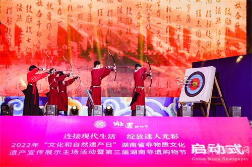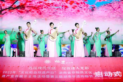 6月1日,2022年“文化和自然遗产日”湖南省非物质文化遗产宣传展示主场活动暨第三届湖南非遗购物节在湖南雨花非遗馆举行启动式。