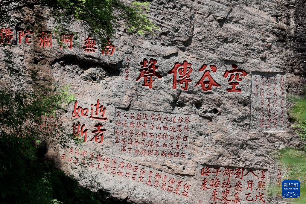 武夷山丹霞石壁上的摩崖石刻(6月6日摄)。