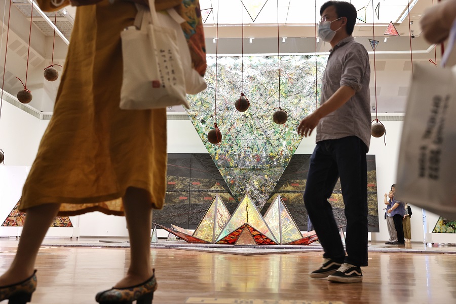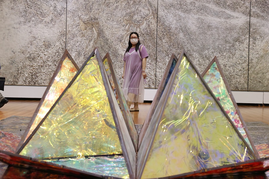 6月10日,观众在“非遗·当代”板块观看作品《长城》。中国日报记者 姜东 摄