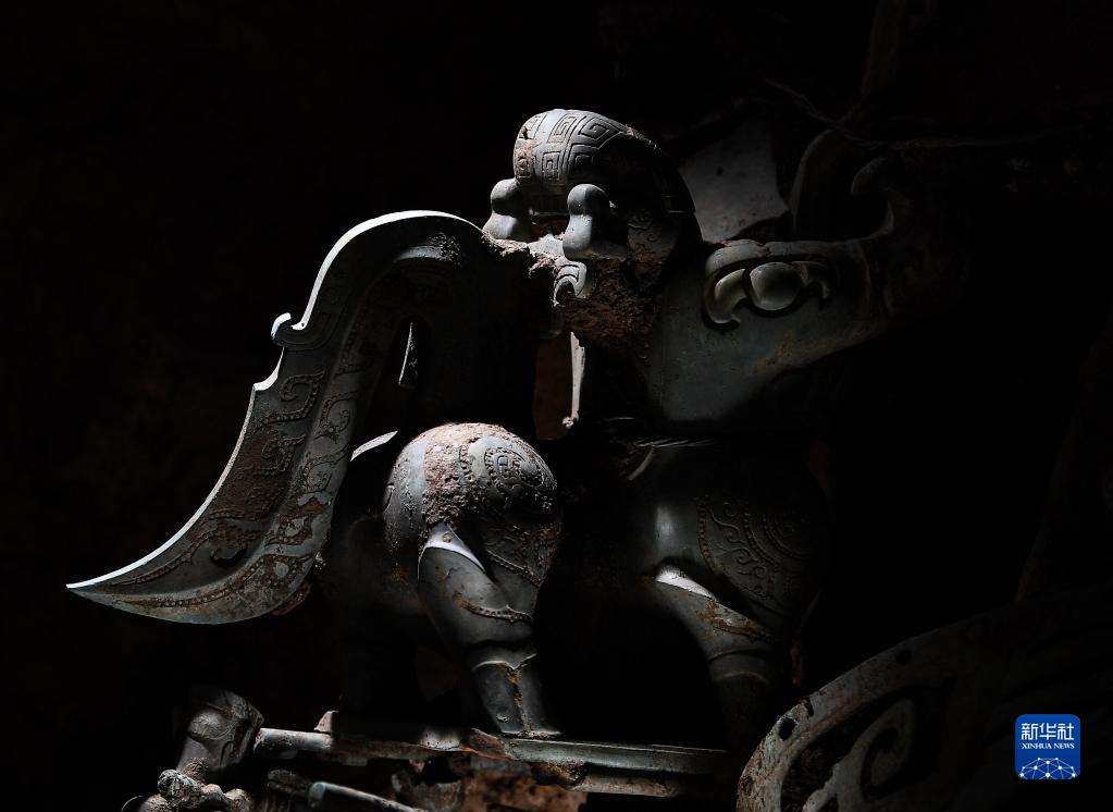 这是在三星堆遗址8号“祭祀坑”拍摄的铜神兽(6月1日摄)。新华社记者 王曦 摄