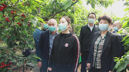“樱你而美 桃醉其中”绛县首届网络樱桃文化宣传活动——运城市委常委、组织部长赵烨到绛县横水镇东录村樱桃园示范基地直播现场,绛县县委书记解芳,绛县县委副书记、县长李翔陪同