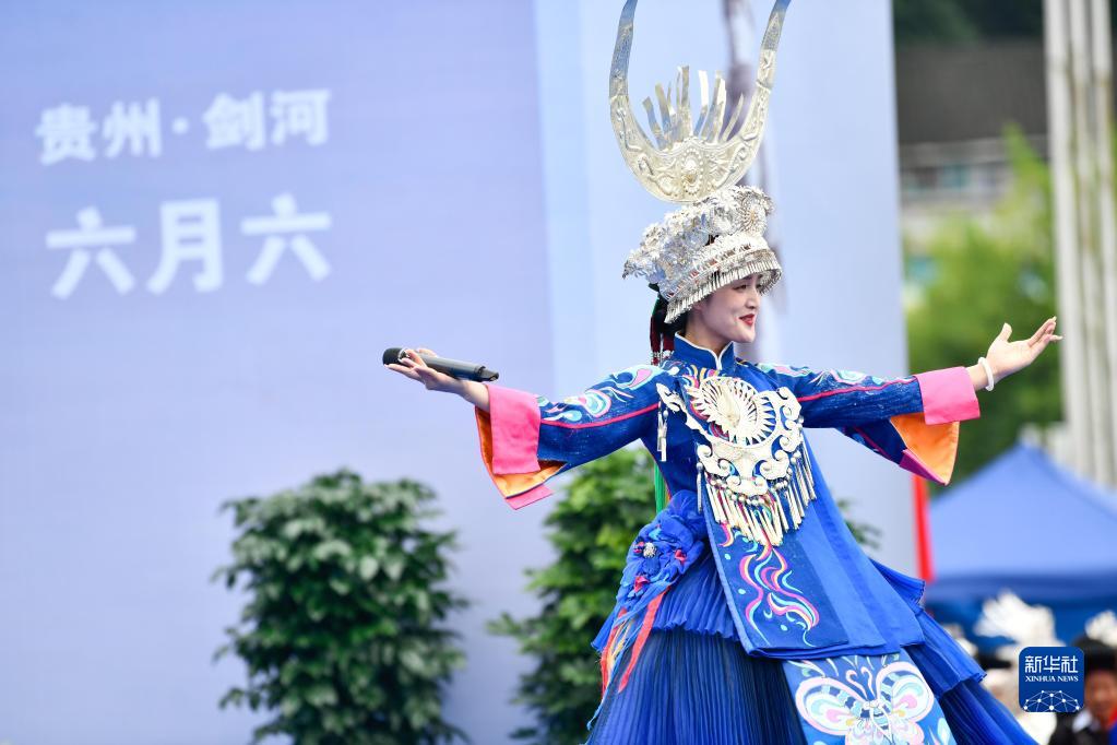 7月2日,歌手在贵州省剑河县“六月六”民族文化活动中参加民族歌舞展演。