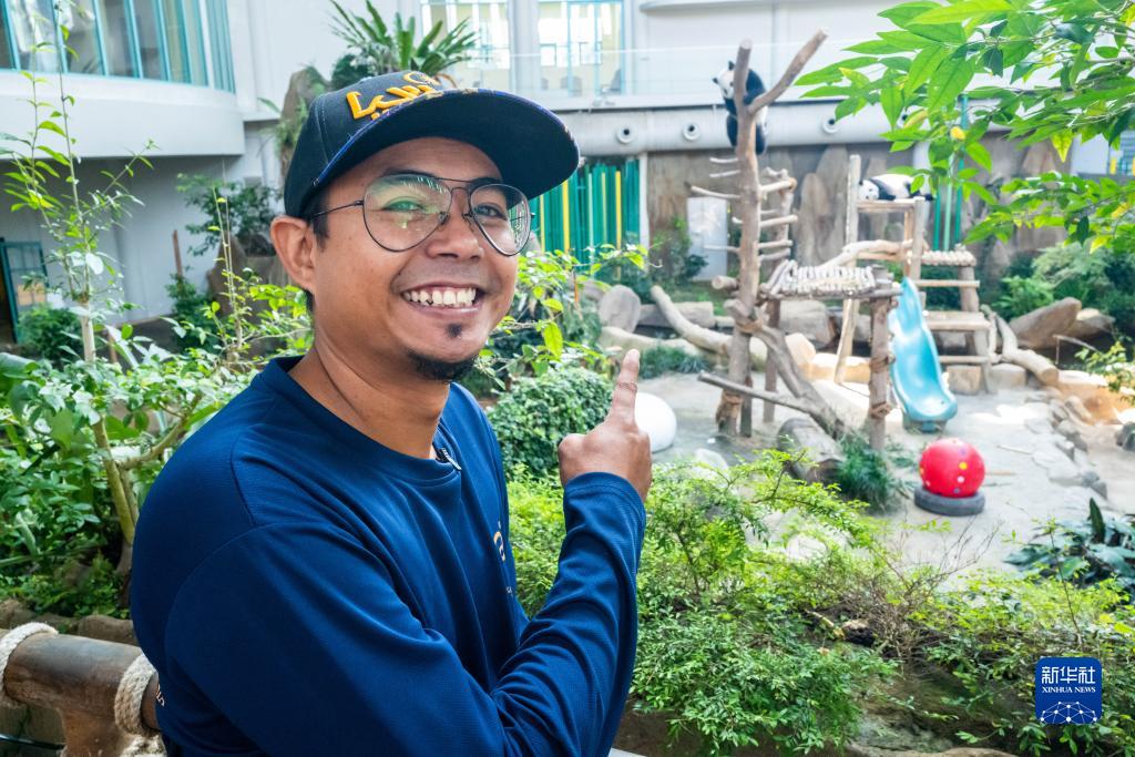 阿克迈勒是马来西亚国家动物园的大熊猫饲养员。从2014年大熊猫“兴兴”和“靓靓”入住马来西亚国家动物园大熊猫保护中心开始,阿克迈勒就负责它们的饮食起居。中心内现在有四只大熊猫——爸爸“兴兴”、妈妈“靓靓”和两个女儿“谊谊”“升谊”。8年来,阿克迈勒照顾大熊猫们的旅居生活,陪着憨态可掬的宝贝们快乐成长,把大熊猫当成自家孩子一样疼爱,产生了深厚的感情。