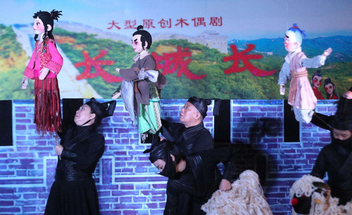 9月23日,八达岭长城景区步行街上进行的木偶剧表演。中国日报记者 邹红 摄