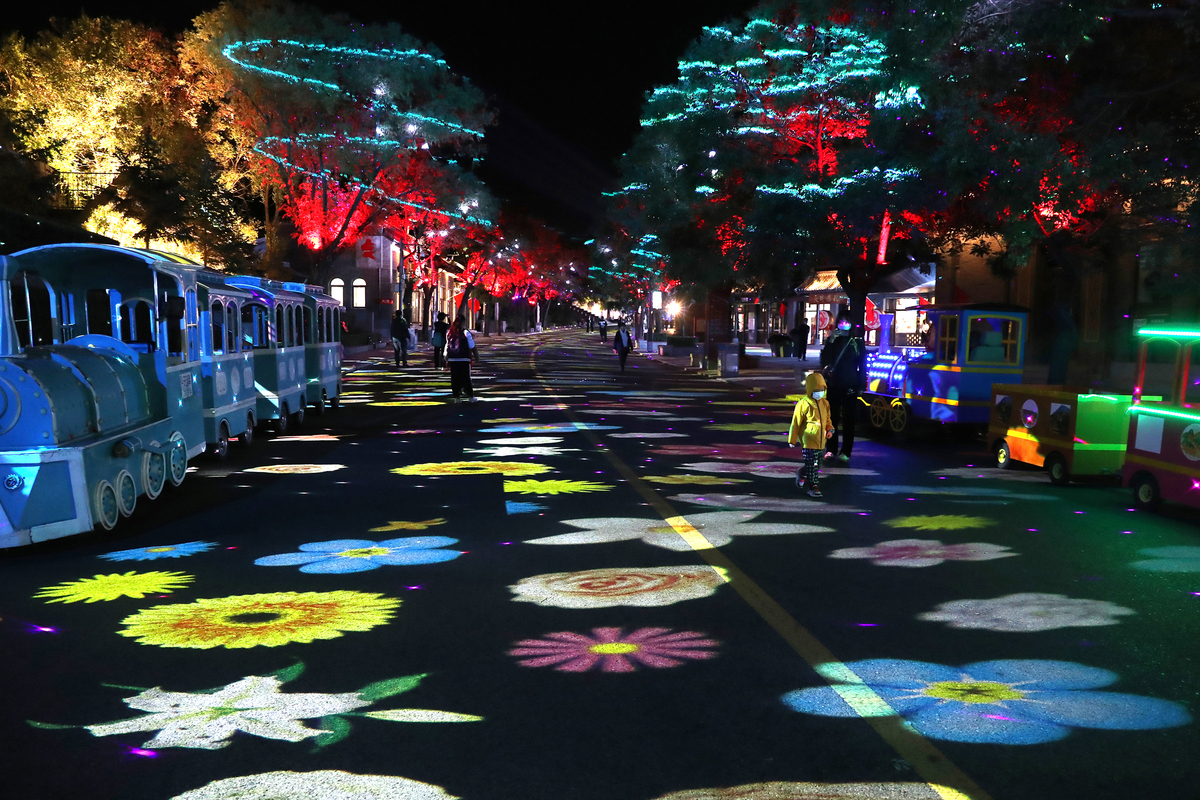 9月23日,八达岭长城景观大道灯光色彩缤纷。中国日报记者 邹红 摄