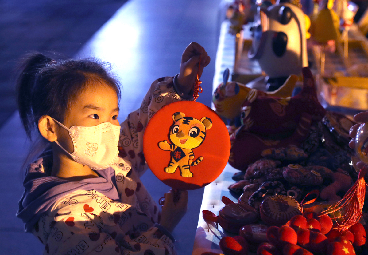 9月23日,一名小朋友被丝绫堆绣吸引。中国日报记者 邹红 摄