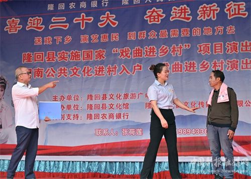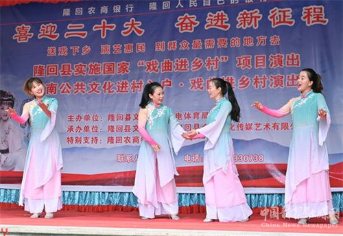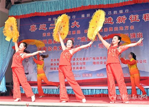 为迎接党的二十大胜利召开,让群众共享文化大发展大繁荣成果,隆回县开展“喜迎二十大,奋进新征程”的文艺下乡巡演。这次演出活动,由隆回县文化旅游广电体育局主办、隆回县金鹊文化传媒艺术有限公司等单位承办。表演的戏曲节目有歌舞《向前冲》《军人本色》,独唱《我的祖国》《最美的歌唱给妈妈》,花鼓戏《夫妻观灯》《文明创建靠大家》,乡村振兴小品《新希望》,戏曲舞蹈《欢聚一堂》等12个精彩纷呈的节目轮番上演。社区居民看戏的积极性非常高,演出开始前早早就搬着凳子在文化广场等候。大家坐在一起其乐融融地观看演出,不仅丰富了精神文化生活,更促进了邻里之间的关系,增强了幸福感和获得感。