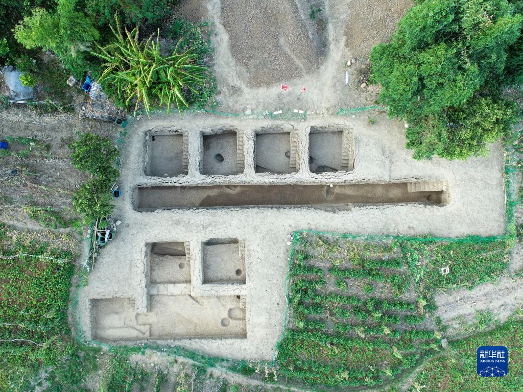 重庆涪陵区小田溪墓群考古发掘现场(2022年9月摄,无人机照片)。