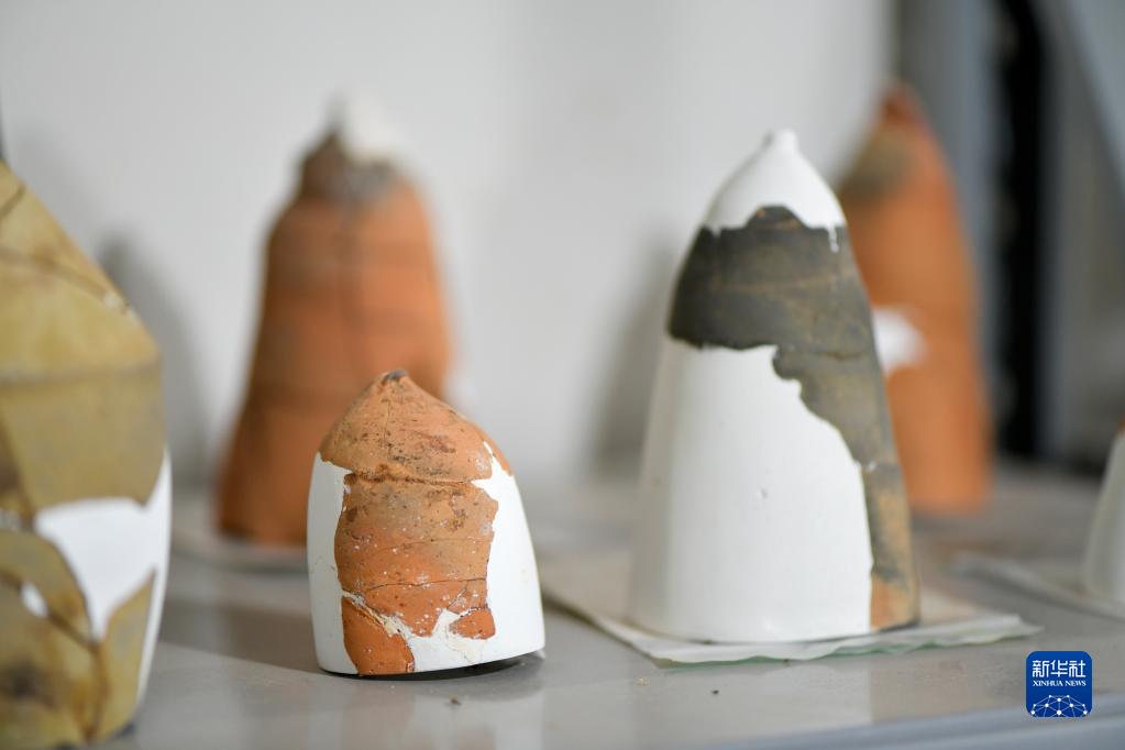 这是小田溪墓群此次考古发掘中出土的陶制尖底器(9月27日摄)。