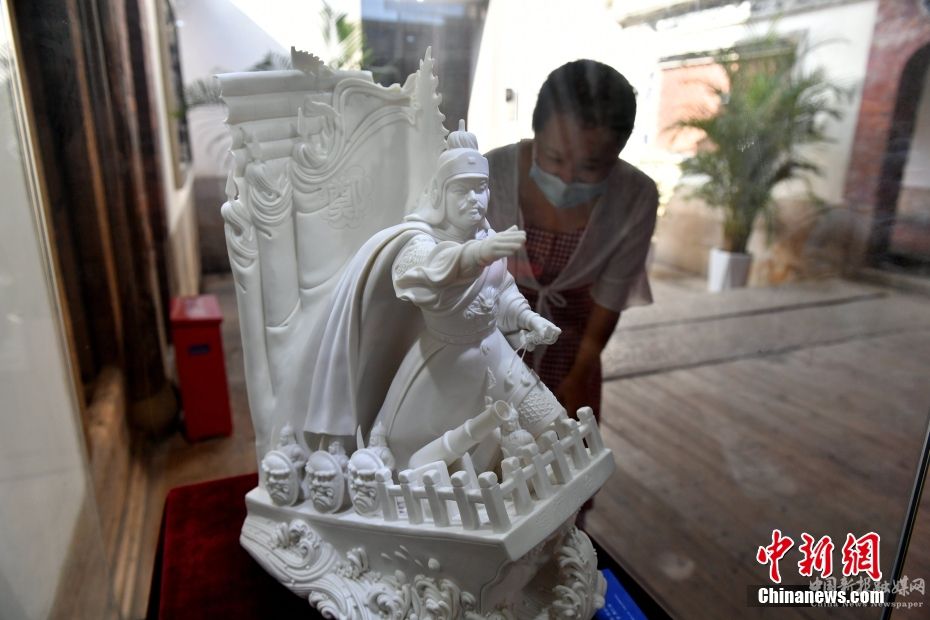 10月14日,由闽台历史文化研究院、中国闽台缘博物馆和福建师范大学闽台区域研究中心共同主办的“开辟荆榛复我宝岛”纪念郑成功收复台湾360周年主题文化展在福州举行。图为郑成功主题陶瓷艺术作品吸引市民参观。中新社记者 吕明 摄