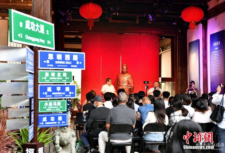 10月14日,由闽台历史文化研究院、中国闽台缘博物馆和福建师范大学闽台区域研究中心共同主办的“开辟荆榛复我宝岛”纪念郑成功收复台湾360周年主题文化展在福州举行。图为展览开幕期间举办了“开辟荆榛复我宝岛”学术对话。中新社记者 吕明 摄
