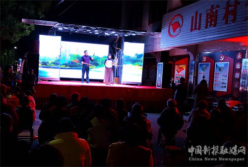 2022年11月14日,安徽省合肥市庐江县金牛镇山南村,当地“草根剧团”庐江黄梅戏迷协会以自编自演的折子戏、门歌等群众喜闻乐见的形式宣传“防诈骗”“防酒驾”等法律法规,吸引众多群众驻足观看。