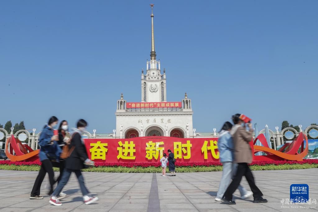 10月6日,人们在北京展览馆展出的“奋进新时代”主题成就展室外展区参观。新华社记者 张玉薇 摄