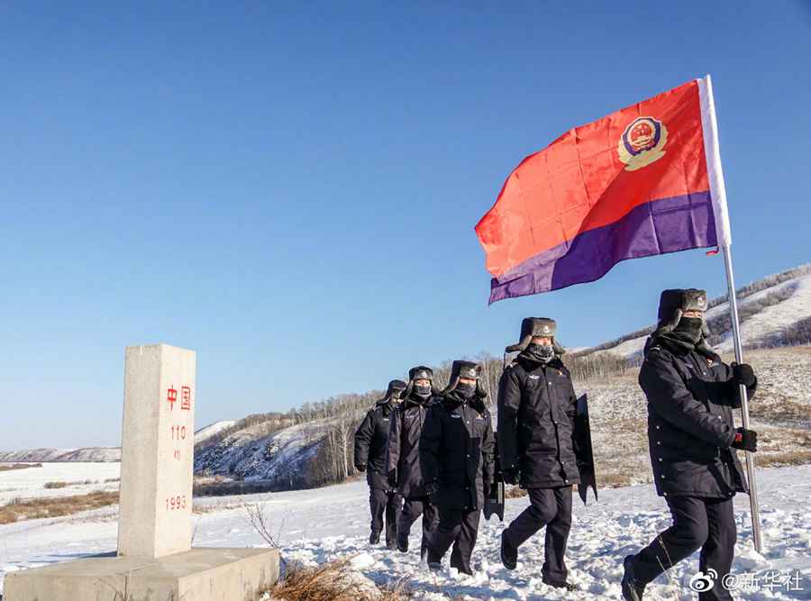 近期,内蒙古自治区呼伦贝尔市边境地区降下大雪,边境线上一些车巡路段被积雪阻断,最低气温一度突破零下40摄氏度。室韦边境派出所的民警们踏积雪、跨冰河,在中俄边境开展巡逻踏查。
