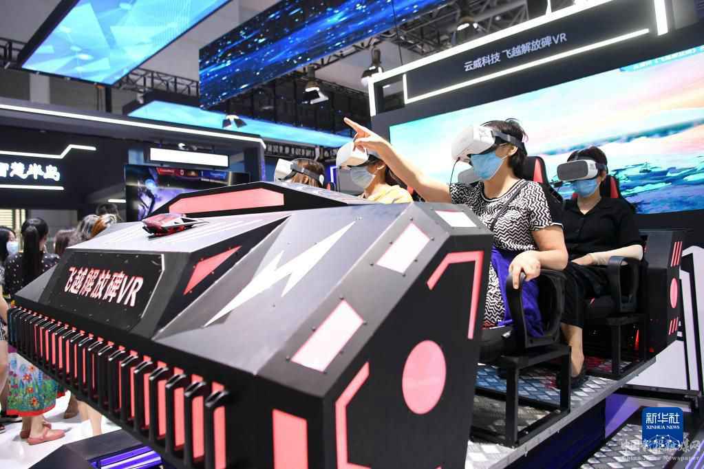 2021年8月23日,观众在2021智博会上通过VR技术体验重庆美景。新华社记者 唐奕 摄