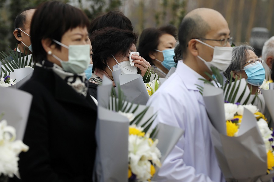 3月24日,捐献者家属在生命追思会现场流泪。中国日报记者 朱兴鑫 摄