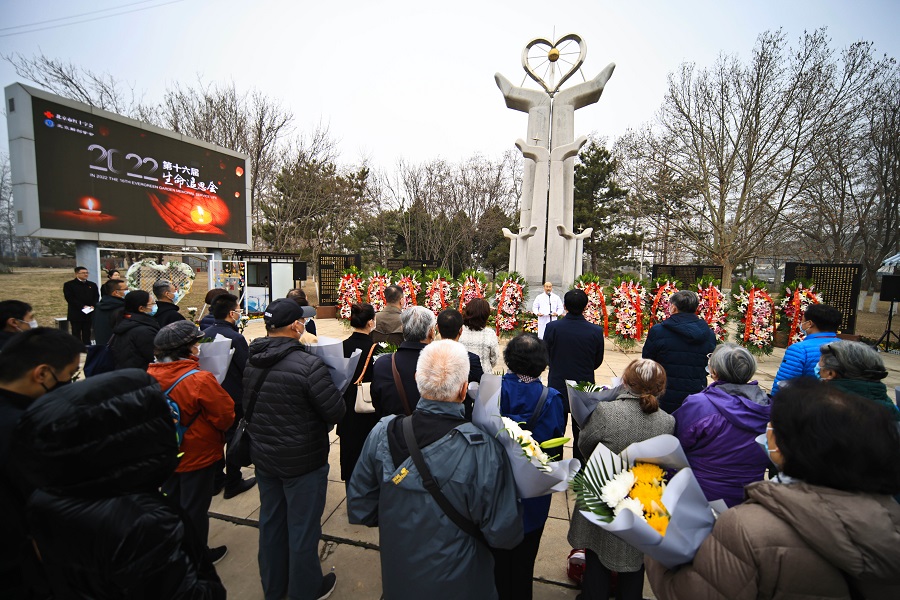中国日报北京3月24日电(记者 朱兴鑫)2022年3月24日,随着清明节临近,由北京市红十字会主办的第十六届生命追思会在北京市长青生命纪念园举办,深切缅怀遗体捐献者和器官捐献者。