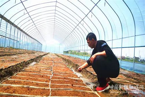 4月7日, 28度的高温让人感觉已然身处盛夏,此时,在湖南省嘉禾县曲龙村的一间育苗棚里,一名皮肤黝黑,个子不高,年约50岁的男子,却丝毫不受天气的影响,正聚精会神的在查看烟苗的生长情况。
