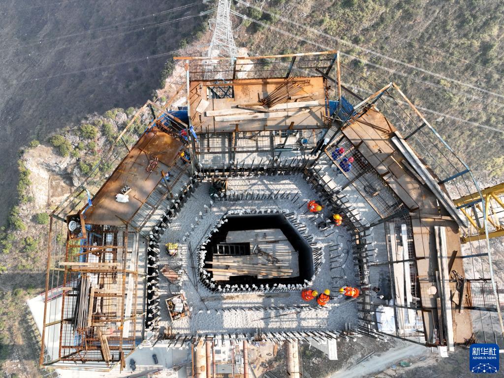 这是2月1日拍摄的花江峡谷大桥施工现场(无人机照片)。新华社记者 欧东衢 摄