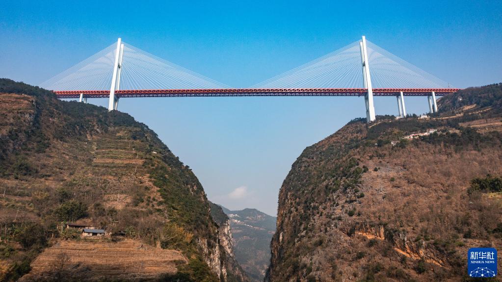 2月10日拍摄的杭瑞高速北盘江大桥(无人机照片)。新华社记者 陶亮 摄