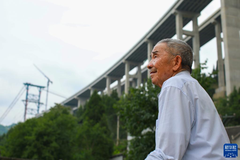 黄大发老人在村旁的大发渠特大桥下远眺(2021年6月16日摄)。新华社记者 刘续 摄