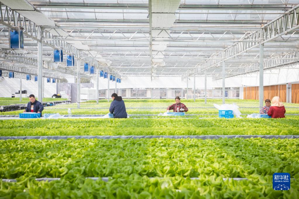 2月15日,工作人员在蔬菜工厂采收叶菜。