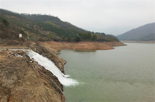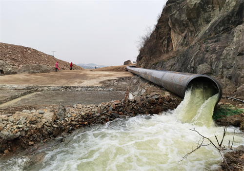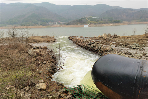 2023年2月24日,大口径球墨铸铁管输水管道正在向安徽省合肥市庐江县虎洞水库补水。