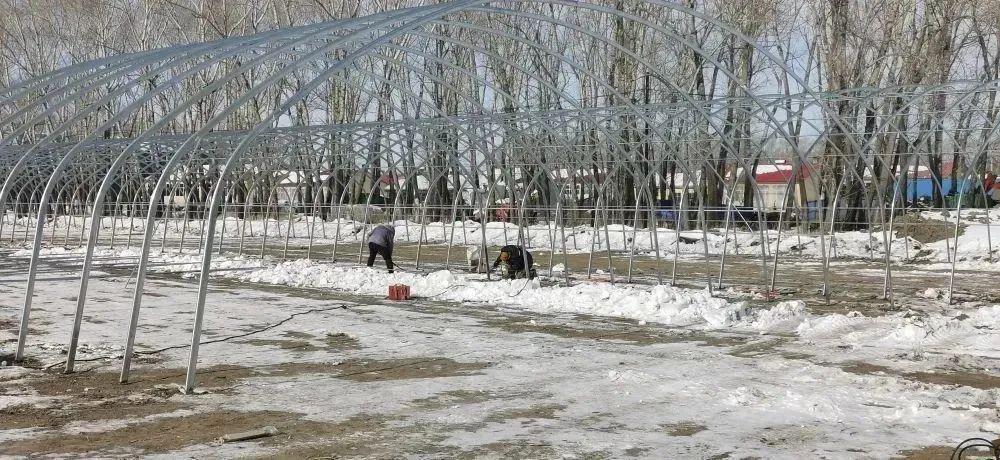 在佳木斯市桦川县玉成现代农机专业合作社的育秧基地,工人们抢抓晴好天气有利时机,人机齐上,开展清雪扣棚作业,为下一步做床、摆盘、播种等接续工作创造良好条件。