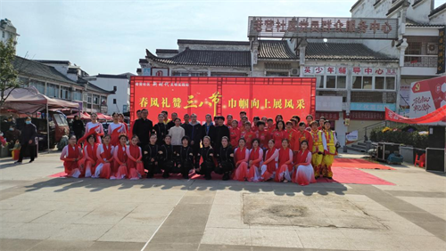 “三八”妇女节前夕,3月7日上午,湖北省十堰市武当山特区武当山街道办事处老营社区在火车站文化广场上组织开展了“春风礼赞三八节、巾帼向上展风采 ”二十大宣讲暨“三八”妇女节文艺汇演活动。特区妇联、武当山街道办事处、武当山街办妇联、社区干部及部分居民代表60人参加活动。
