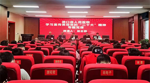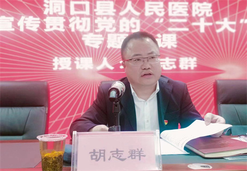 3月8日上午,洞口县卫健局党委书记、局长胡志群到县人民医院为该院全体党员讲授党的二十大精神专题党课。县纪委监委派驻县委宣传部纪检监察组组长肖志友、县红十字会常务副会长肖光伟等参加。