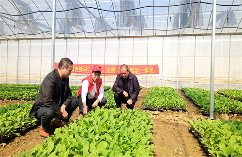 3月10日,新田县新隆镇临河村农业示范基地(育秧工厂、设施栽培)建设项目工人正在烤烟育苗、组架、附属道路建设,现场一片繁忙景象。