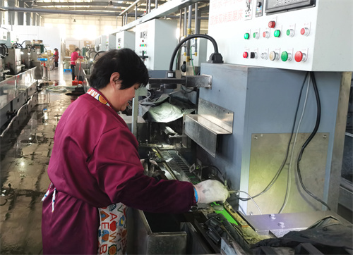 2023年3月10日,国家级高新技术企业、安徽省专精特新中小企业安徽万磁电子股份有限公司铁氧体磁瓦车间,工人正在紧张生产出口产品。