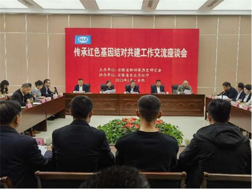 3月10日,由安徽省新四军历史研究会主办、安徽省农业农村厅协办的传承红色基因结对共建工作交流座谈会在合肥召开。安徽省新四军历史研究会会长郑牧民,安徽省农业农村厅副厅长赫璞峰,省新四军历史研究会副会长邱江辉、胡皖、陈卫东等领导同志出席会议,省新四军历史研究会和结对共建单位的负责同志及相关人员参加会议。