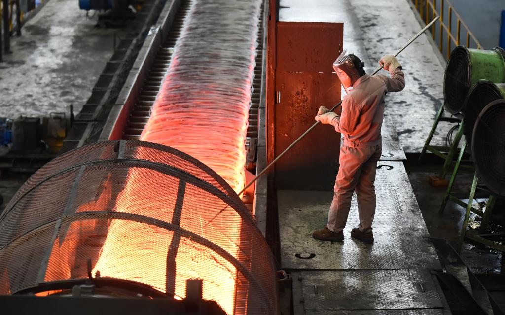 广西盛隆冶金有限公司的钢材轧制过程。(受访者供图)