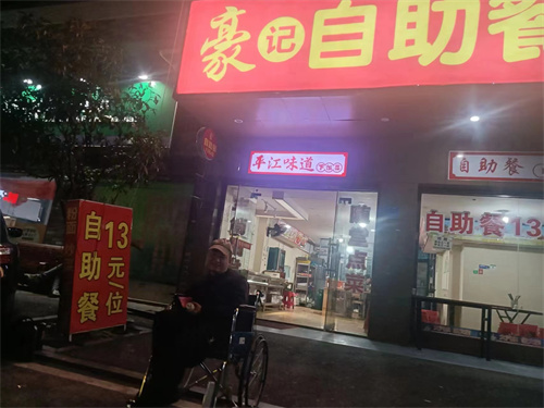 2月18日,长沙县安沙镇一级重度残疾人刘露因病在长沙经开医院住院治疗。当天晚上,吃惯了家常菜的刘露在好朋友的帮助下来到长沙县榔梨街道高峰社区龙华小区15栋2号“豪记餐馆”吃晚饭。“豪记餐馆”罗老板两口子非常热情接待了坐着轮椅来就餐的刘露,并耐心详细地介绍了店里的各色菜品供刘露自选。