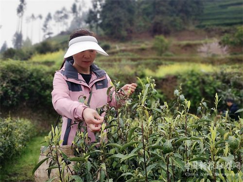 暖风微醺,雨水充沛,春茶长势喜人。走进古阳镇长潭村的高山茶园,举目远眺,漫山遍野的茶树郁郁葱葱,嫩芽傲立枝头。