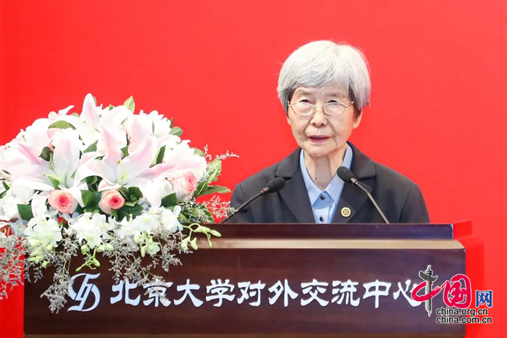 龚旗煌校长代表学校向樊锦诗校友授予北京大学杰出教育贡献奖。中国网 佟明月摄
