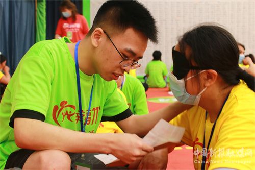 接下来是游戏环节,“天下一家亲”要求通过“卡片对话”的形式向组员介绍自己,并获得其他成员的嘉许,大家都感觉到原来勇敢表达自己并被肯定是一件快乐无比的事情。随后,大家分组开展的“呼啦圈游戏”让同学和家长明白了原来万事万物都是有规律的,只有掌握了规律,我们才能更好的完成。紧接着,同学们用桌椅拼凑连接模拟坎坷之路,蒙上父母的眼睛,搀扶跨越这条坎坷的路,成为父母的依靠。短短的路程,传递的正是彼此间的爱与信任。每位同学都小心翼翼的牵着自己父母,走过这一段不同寻常的路,这一次换我们守护着你。