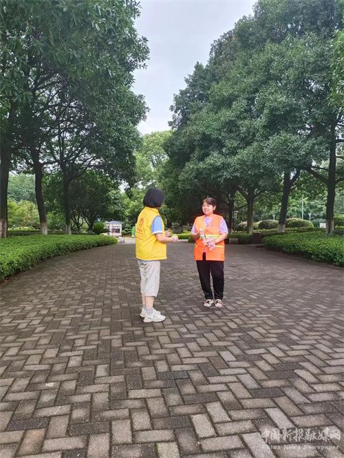 紧接着,这一群身穿黄色义工马甲的中学生每人携带着五瓶冰镇矿泉水走上了街头,散布在附近的街道上。当同学们遇到了快递小哥、环卫工人和交通警察等户外工作人员时便会主动上前礼貌地问候,并将水递给对方,同时还会送上一声“辛苦了!请喝水!”来表达了对他们的敬意和感谢。接过水,有的快递小哥很感动,有的环卫工人很惊喜,有的交通警察很高兴。