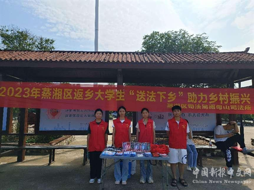 中国新报湖南讯(贺钰雯)为推进基层依法治理,8月15号上午,蒸湘区雨母山镇组织返乡大学生在东阳广场开展暑假“送法下乡”法治宣传活动。