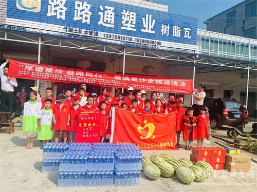 中国新报湖南讯(特约记者 刘露 通讯员 梁桂芳)长沙县爱的摆渡人义工发展中心联合通程商业广场星沙店等多家爱心单位共同发起的“厚德星沙 益路同行”长沙县全城送清凉大型志愿活动自7月9日正式启动以来,除了广大中小学生踊跃报名参与,也吸引了一大批爱心商企纷纷加入进来。8月16日,长沙县安沙镇安沙社区青年志愿者协会在长沙县新的社会阶层人士联谊会杨梁伟沧先生和长沙县安沙养天和和彤大药房支持下开展了安沙镇送清凉活动。